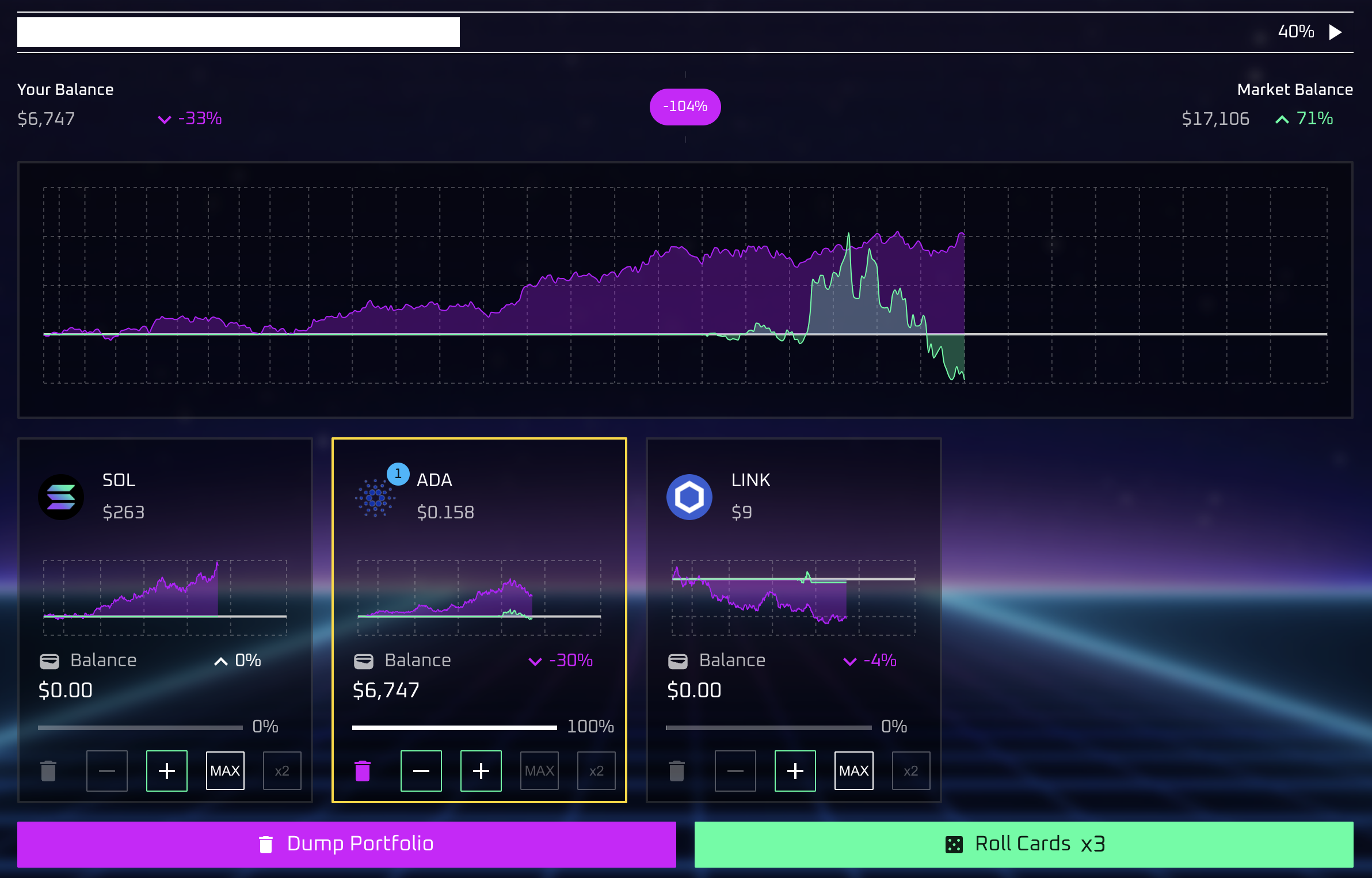 Use the "Shuffle" button to get a new set of asset cards if you're not satisfied with the current selection. This will also reallocate the portfolio